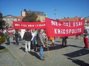 Glädjande att notera var även att motståndet mot ett USA-lett angreppskrig mot Syrien var något som förenande alla fyra talare över partigränserna. Något som också visade sig bland åhörarna där många hade köpt RKU:s pin ”Nej till krig mot Syrien”.