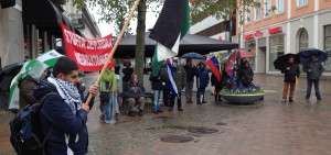 I blåst, regn och kyla samlades 75 åhörare när Växjöavdelningens Linn Liljedahl och Jan-Åke Karlsson talade på Speakers Corner. Mötet föregicks av en högljudd demonstration genom Växjö, där 50 personer deltog, med en levande talkörer med paroller såsom ”Gamla och sjuka ska vi inte svika – Öka, öka, skatten för de rika”, ”Bojkotta Israel – Leve Palestina” och Leve socialismen – krossa kapitalismen”.