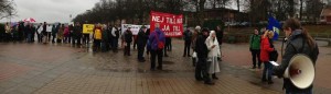 Lördag 5 december tågade närmare 100 växjöbor i regn och rusk mot NATO och värdlandsavtalet. Demonstrationen gick från vattentorget till Speakers corner och anordnades av ”Kronoberg För Fred och Alliansfrihet (KFA). På Speakers corner hölls tre tal varav ett av Linn Liljedahl från vår partiavdelning.