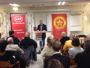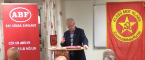 Anders Carlssons föredrag om sin kommande bok om Oktoberevolutionen och utvecklingen därefter i Ryssland och Sovjetunionen försökte Växjö kommun stoppa genom att förvisa oss och ABF från det bokade ”Fria ordets hus”. Upprördheten över detta odemokratiska och märkliga agerande har varit stor och intresset för mötet har därmed ökat. Viktoriasalen hos IOGT var fylld till sista plats och när åhörarna gick hem efter drygt två timmar fanns det nog ingen som inte ville läsa den ännu outgivna boken direkt.