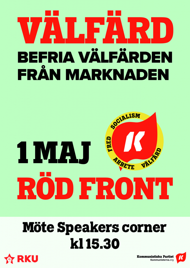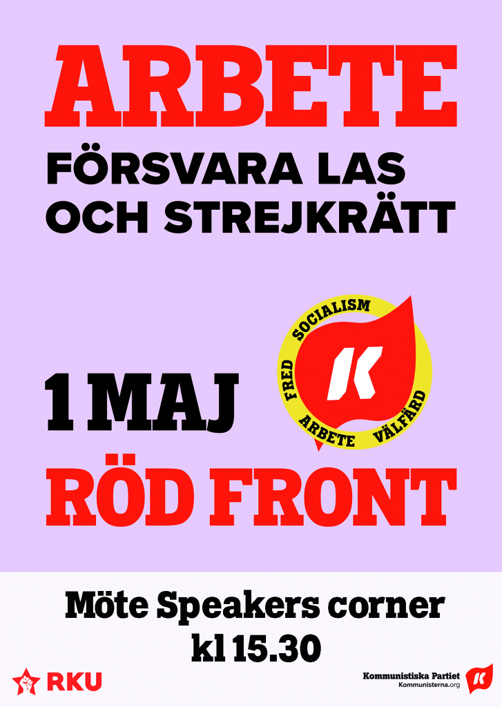 Fira arbetarklassens egen dag tillsammans med oss. Vi håller möte på gågatan på 1 maj – Speakers corner kl 15.30