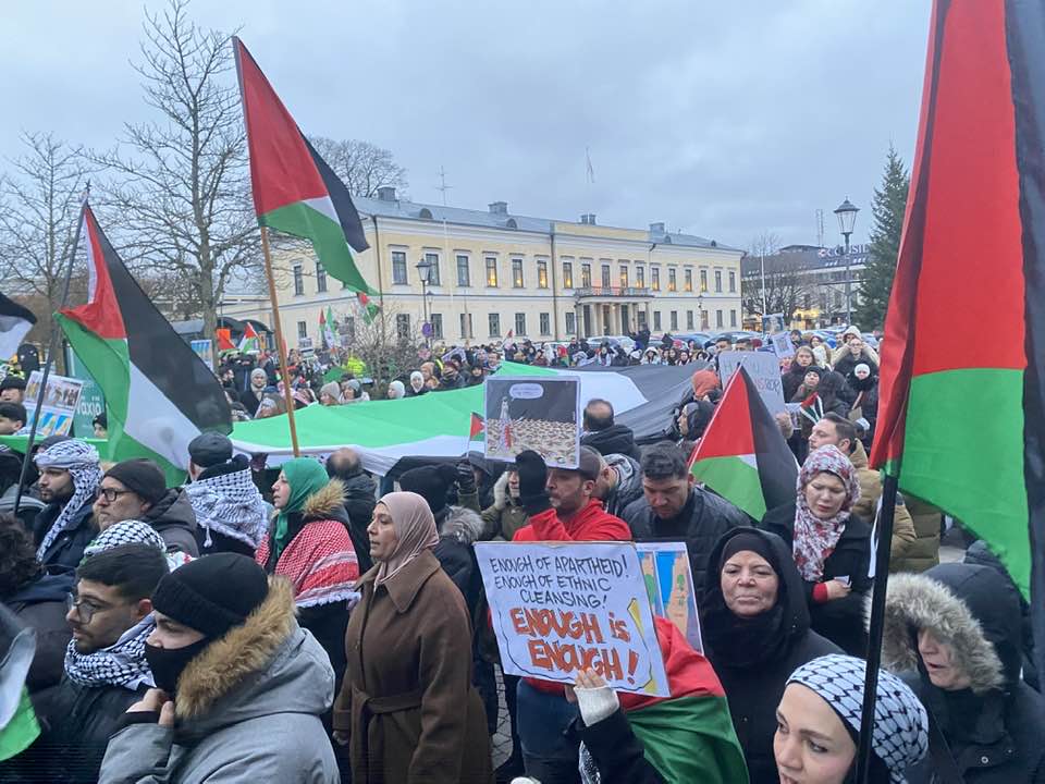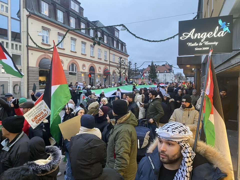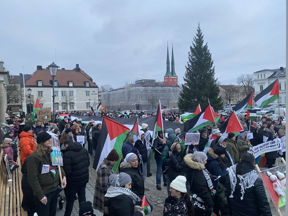 Söndag 26 november deltog drygt 600 personer i ännu en Palestinademonstration, denna gång i ett kylslaget Växjö. Högljudda talkörer och massiv solidaritet med det palestinska folket. Budskapet var tydligt: Bojkotta Israel tills dessa att det palestinska folket fått tillbaka sitt land och sina rättigheter. Jan-Åke Karlsson från vår partiavdelning höll i mötet och vår kända Palestinaaktivist Gunnel Thörn läste upp en uppskattad dikt om Gaza