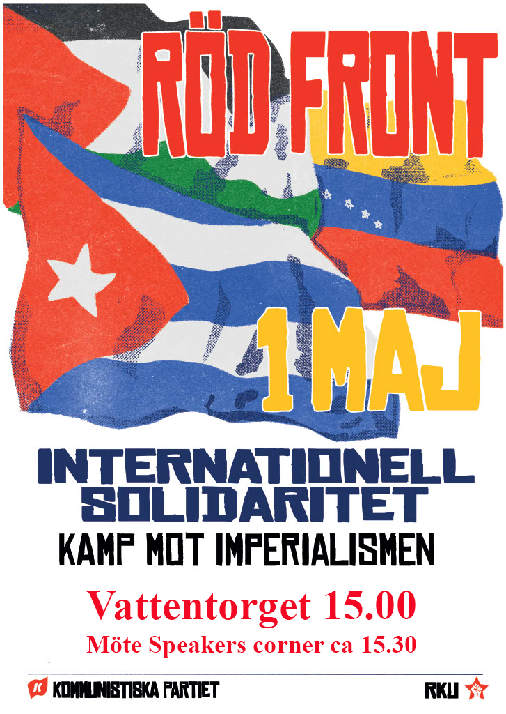 I år går 1 maj i den internationella solidaritetens tecken. Vi säger nej till imperialismens krig, kräver en bojkott av Israel och visar vårt stöd för det palestinska folkets rättigheter. Vi samlar in pengar för att bygga solceller på en vårdcentral på Kuba.